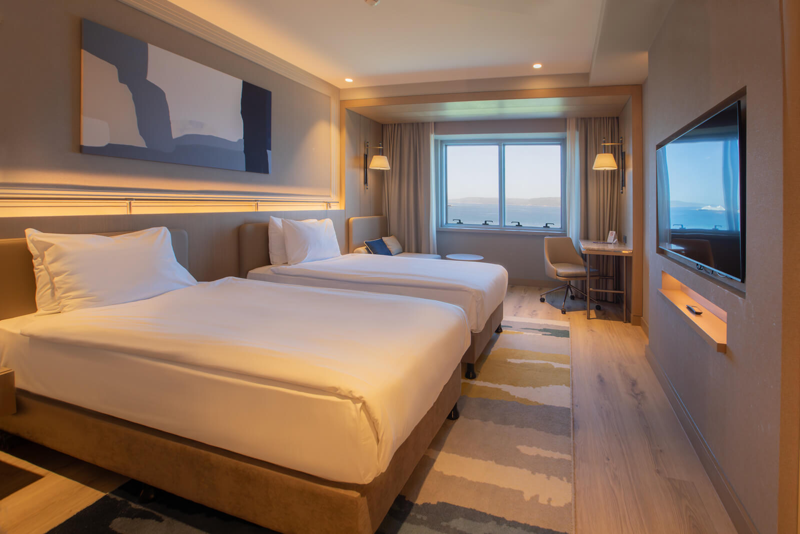 В хотела има 276 стаи с гледка към парка или към града. Стилни, луксозни и с елегантен интериор стаите му разполагат с климатик, телевизор, мини бар, безжичен интернет (безплатен) и бани с душ кабини.